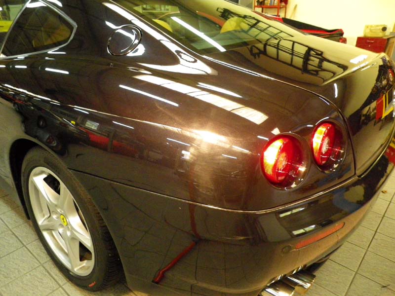Prestige automotive soins cosmétiques auto - préparation cosmétique d'une FERRARI 612 SCAGLIETTI - Mise en brillance d'une FERRARI 612 SCAGLIETTI