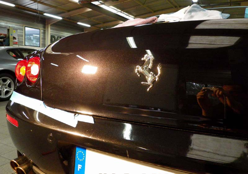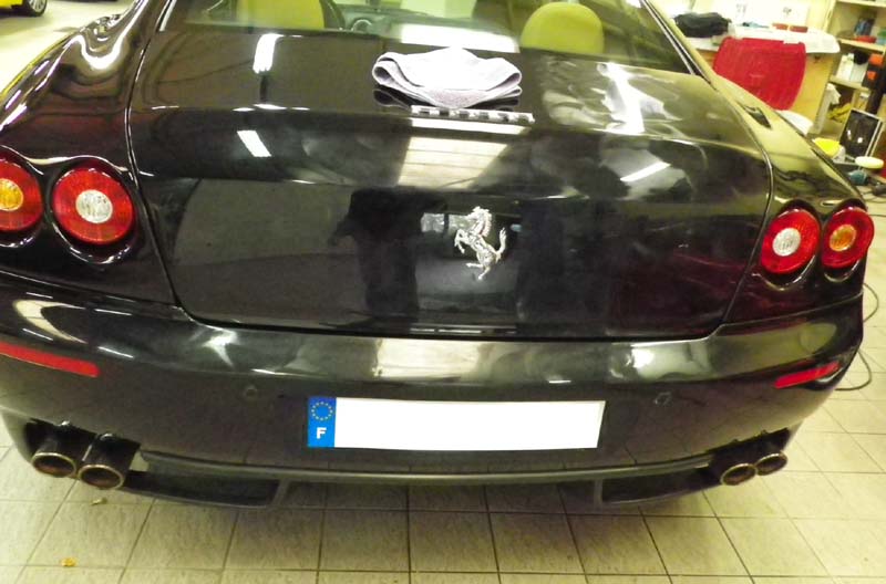 préparation cosmétique d'FERRARI 612 SCAGLIETTI. preparation FERRARI 612 SCAGLIETTI. supprimer microrayures sur FERRARI 612 SCAGLIETTI. enlever micro rayures FERRARI 612 SCAGLIETTI. faire briller FERRARI 612 SCAGLIETTI. preparation carrosserie FERRARI 612 SCAGLIETTI.
