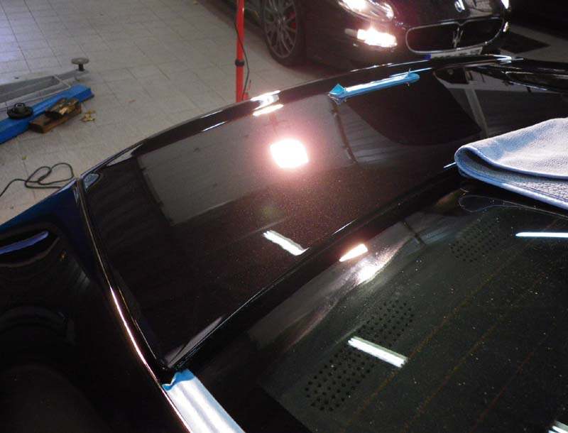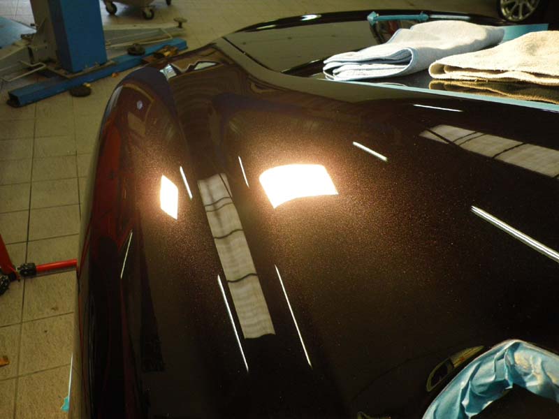 Le polissage terminé, application d'un cleaner sur l'ensemble de la carrosserie, puis de la cire.