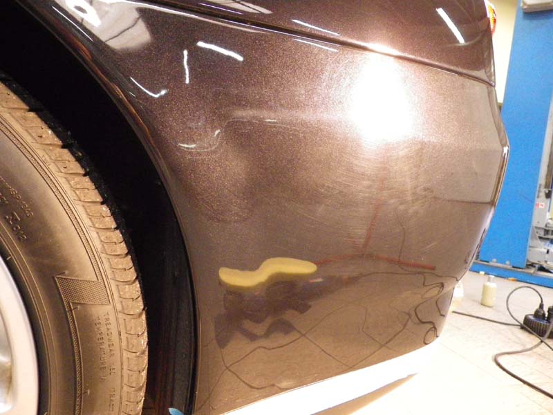 ...et après polissage. Profondeur de couleur, éclat des paillettes retrouvé.